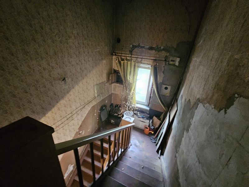 W budynku znajdują się dwa odrębne lokale mieszkalne. Wejście do każdego z nich odbywa się niezależnie z klatki schodowej. Zgodnie z informacjami zawartymi w pozyskanej inwentaryzacji, opisywany budynek posiada fundamenty z kamienia i cegły na zaprawie cementowej. Ściany nośne piwnic murowane z cegły pełnej na zaprawie cementowej, natomiast ściany nośne i działowe parteru i piętra murowane z cegły silikatowej na zaprawie wapiennej. Stropy w budynku nad piwnicą sklepienie odcinkowe, natomiast na parterem i piętrem drewniane z podsufitką. Konstrukcja dachu czterospadowa, drewniana pokryta papą. Naproża typu Kleina wzmocnione płaskownikiem stalowym gr. 10 mm. Schody w budynku do piwnicy jednobiegowe ceramiczne, na piętro natomiast dwubiegowe drewniane. Budynek zabezpieczony jest przed szkodami górniczymi przez kotwienie w dwu poziomach. Jest on wyposażony w instalacje elektryczną, wodociągową i kanalizacyjną. Ogrzewanie lokali indywidualne. Konstrukcja budynku nieotynkowana i nieocieplona. Klatka schodowa w przeciętnym stanie technicznym i niskim standardzie wykończenia. Zgodnie z informacjami pozyskanymi podczas oględzin ustalono, że z większych prac remontowych, w ubiegłym roku zostało wymienione orynnowanie.