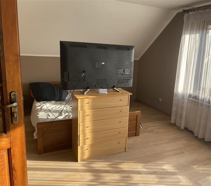 W budynku mieszkalnym na parterze: salon z kuchnią, łazienka, sypialnia, korytarz, na piętrze: trzy pokoje w tym dwa z garderobą, WC, łazienka. W piwnicy: pralnia, dwa pomieszczenia gospodarcze, WC, spiżarnia pod schodami.Ogrzewanie domu i wody użytkowej piecem na paliwo stałe. W budynku wykonano instalację elektroenergetyczną, wodno–kanalizacyjną i centralnego ogrzewania. Nieruchomość objęta jest księgą wieczystą KW Nr RZ1S/00015372/7, prowadzoną przez Sąd Rejonowy w Strzyżowie IV Wydział Ksiąg Wieczystych.