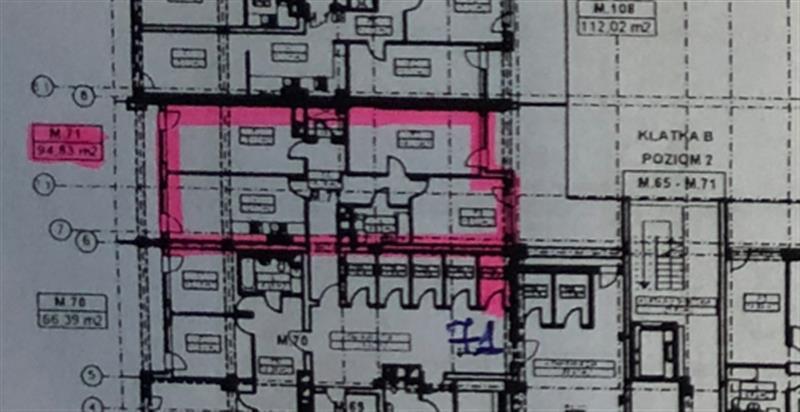 Powierzchnia użytkowa lokalu mieszkalnego nr 71, usytuowanego na 3 kondygnacji tj. 2 piętrze budynku, wynosi 94,83 m2. Opis lokalu (zgodnie z księga wieczystą i aktem notarialnym umowy sprzedaży): pokój - 3, kuchnia - 1, łazienka z wc -1, garderoba -1, przedpokój – 1. Pomieszczenie przynależne - komórka nr 71 o pow. 3,48 m2. Z uwagi na ograniczony zakres oględzin - nieudostępnienie lokalu wewnątrz brak danych dotyczących standardu i wykończenia. Stąd stan techniczno-użytkowy przyjęto jako dobry. Przedmiotowa nieruchomość leży poza zasięgiem obowiązujących miejscowych planów zagospodarowania przestrzennego. W studium uwarunkowań i kierunków zagospodarowania przestrzennego m. Rzeszów zlokalizowana jest w obszarze mieszkaniowym.