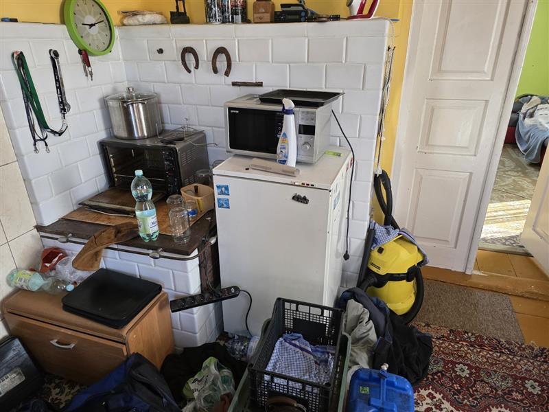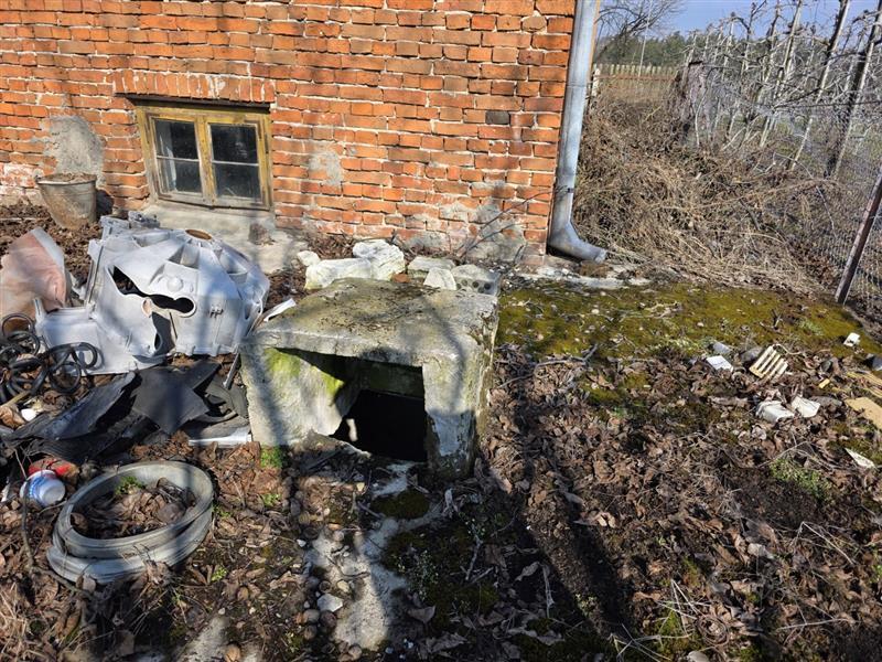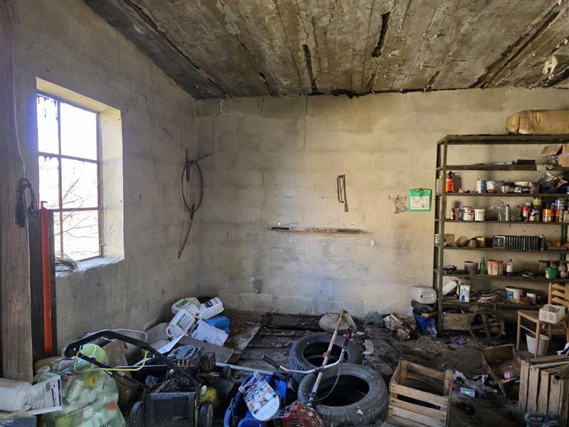 Budynek parterowy podpiwniczony, brak danych o dacie budowy. Wg informacji udzielonych w trakcie oględzin budynek w wieku 80 lat. Budynek o rzucie zbliżonym do kwadratu. Do piwnicy wejści z przedsionka wejściem w podłodze, w piwnicy o wysokości 1,7m -1,8m kotłownia z piecem na paliwo stałe i pomieszczenia gospodarcze, powierzchnia 49,96m2. Na parterze ganek, kuchnia, łazienka z wc, korytarz, dwa pokoje mieszkalne, wejście schodami betonowymi. Powierzchnia zabudowy Pz= 66m2, Powierzchnia użytkowa Pu = 55,93 m2 konstrukcja budynku: Fundamenty betonowe, ściany fundamentowe murowane, Ściany zewnętrzne - drewniane, Strop nad piwnicą wylewany, Dach- konstrukcji drewnianej kryty blachą płaską, Posadzki - deski drewniane, terakota, w piwnicy posadzka betonowa i ziemna. Ściany tynkowane i malowane, w łazience i częściowo w kuchni glazura. Okna PCV. W kuchni piec kuchenny, w łazience kabina prysznicowa z bolierem elektrycznym. W budynku instalacje: wodociągowa, kanalizacyjna do szamba usytuowanego na działce sąsiedniej, elektryczna, centralnego ogrzewania z pieca węglowego.