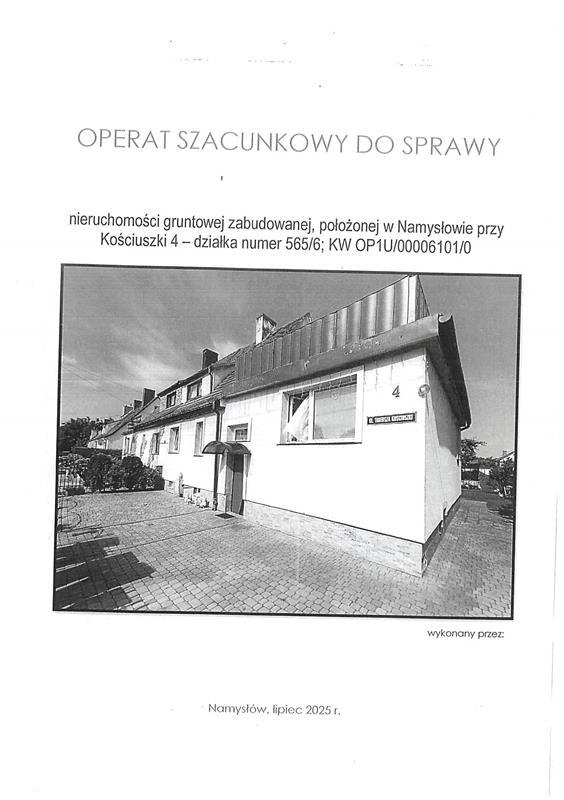 - nieruchomości położonej przy Kościuszki 4, 46-100 Namysłów, dla której Sąd Rejonowy w Kluczborku (adres: ul. Skłodowskiej-Curie 15, Kluczbork, 46-200 Kluczbork) prowadzi księgę wieczystą o numerze OP1U/00006101/0.