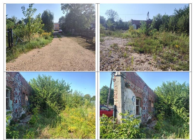 W granicy działki odnotowano pozostałości budynku – zachowana jest jedna murowana ściana z czerwonej cegły. Ściana wymaga zabezpieczenia lub rozbiórki ze względu na zaawansowane zużycie techniczne. Teren nie jest