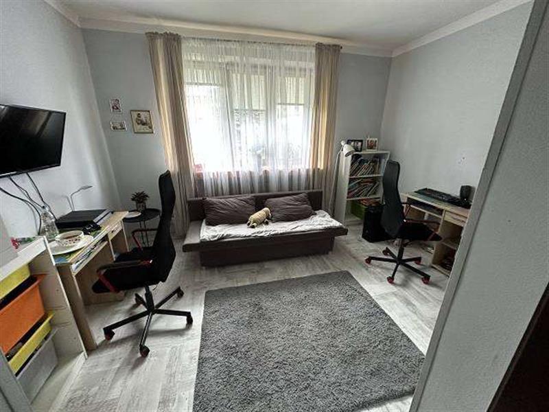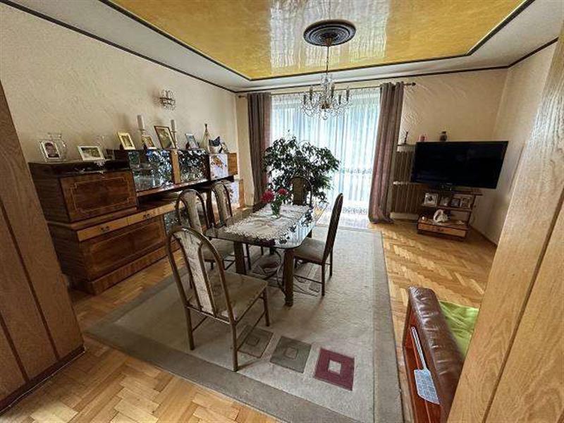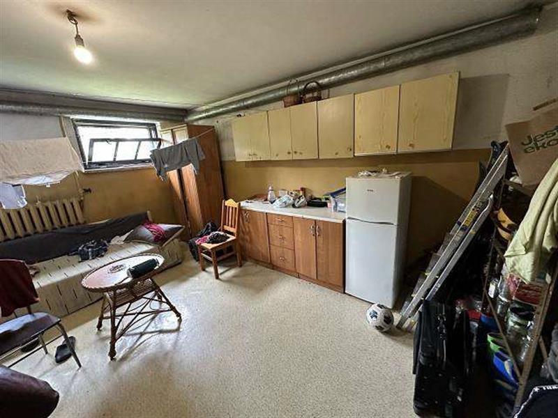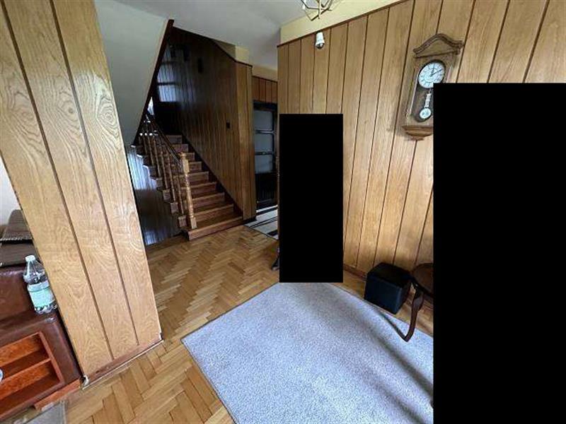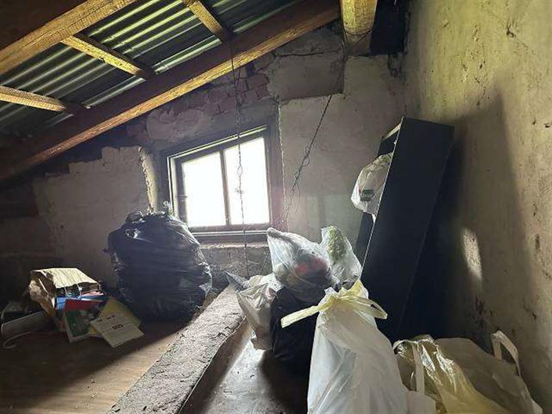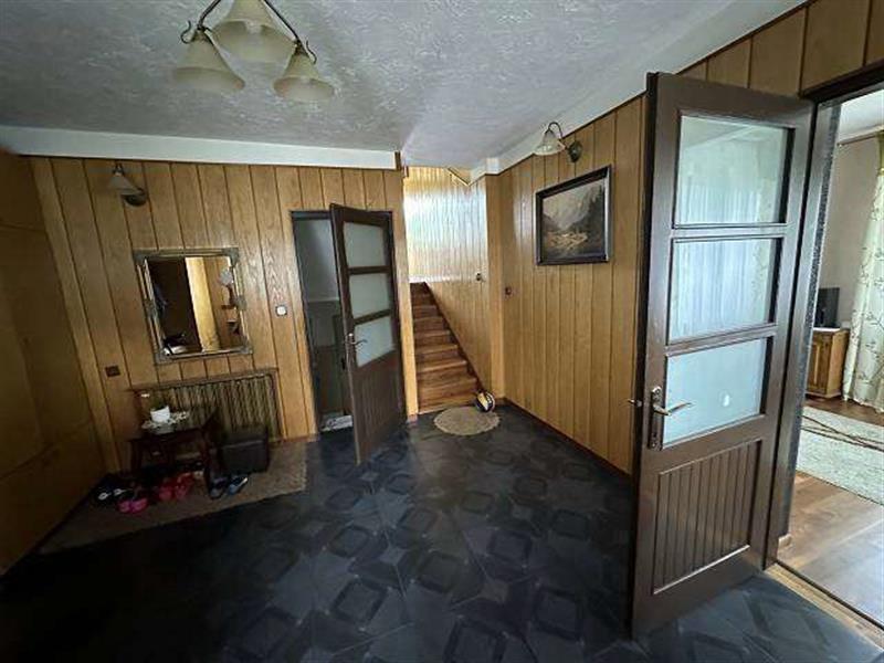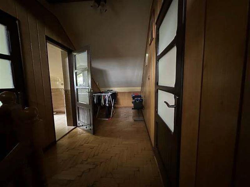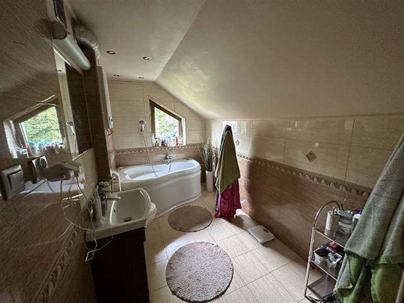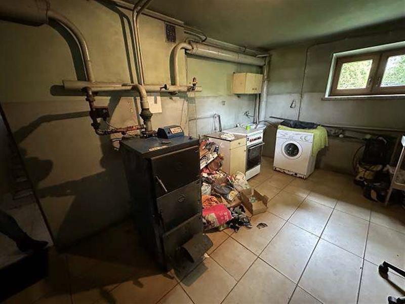 Licytowana nieruchomość jest zabudowana budynkiem mieszkalnym jednorodzinnym w zabudowie wolnostojącej, składającym się z jasnego przyziemia, parteru, półpiętra, I piętra, drugiego półpiętra, pierwszego poddasza użytkowego oraz drugiego poddasza nieużytkowego. Budynek kryty dachem wielospadowym o konstrukcji drewnianej z pokryciem z blachy falistej. Obiekt wykonany w technologii tradycyjnej - murowanej, mur warstwowy (cegła i pustak), rynny i rury spustowe stalowe powlekane, stolarka okienna PCV z okleiną drewnopodobną - zespolona, w części przyziemia częściowo stolarka okienna drewniana starego typu, balustrady na balkonach stalowe z deskowaniem. Budynek kilkudziesięcioletni (zgodnie z wypisem z rejestru gruntów - 1998 r.), wyposażony w instalację elektryczną, gazową, wod-kan (w tym przydomowe szambo), ogrzewanie CO z kotłów gazowych oraz dodatkowo piec na węgiel.