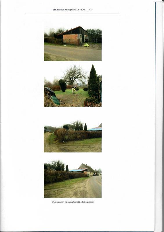 https://drive.google.com/file/d/1pcdaWqZ-heeC_40OJw4EoEBBDsK9VbDQ/view?usp=sharing Licytowana nieruchomość położona jest w Mierzynku 11A - obręb Salinko. Dojazd do nieruchomości z istniejącej drogi oznaczonej nr ew. 66/55 i nr 66/56 – działki stanowią własność gminy i w planie zagospodarowania przestrzennego oznaczone są jako drogi wewnętrzne. Bezpośrednie sąsiedztwo nieruchomości stanowią podobne domy jednorodzinne, działki niezabudowane. W odległości ok. 110-130 m znajduje się brzeg jeziora Salińskiego. W skład nieruchomości zabudowanej wchodzi działka gruntu nr 66/18 obszaru 377 m2zabudowana budynkiem mieszkalnym w zabudowie zwartej (jedna czwarta budynku typu czworak) oraz budynkiem gospodarczym. Nieruchomość wyposażona w sieci: energetyczną, wodociągową, kanalizacyjną. Działka nieregularnego kształtu. Część południowa działki – niezabudowana jest wykorzystywana jako ogród – teren porośnięty trawą, roślinnością ozdobną i użytkową. Budynek mieszkalny jest obiektem parterowym ze strychem - ściany murowane, strop nad parterem drewniany, dach konstrukcji drewnianej kryty eternitem. Ściany zewnętrzne bez docieplenia od zewnątrz. Elewacja otynkowana i malowana. Brak danych co do okresu budowy budynku. Budynek wyposażony jest w instalacje: elektryczną, wodociągową, kanalizacyjną, grzewczą - ogrzewanie etażowe (piec na drewno/ węgiel znajduje się w kuchni). W budynku znajdują się dwa pokoje, kuchnia, łazienka i korytarz. Kuchnia oraz jeden z pokoi są pomieszczeniami przechodnimi. W pierwszym pokoju podłoga wyłożona panelami, ściany w części malowane, w części obłożone tapetami. W drugim pokoju podłoga wyłożona płytami pilśniowymi, ściany malowane. Na ścianie zewnętrznej, narożniku, w strefie przypodłogowej widoczne zawilgocenie. W kuchni podłoga jest wyłożona płytkami terakoty, ściany w części obłożone glazurą, a w części malowane. W łazience podłoga wyłożona linoleum, ściany malowane. W łazience znajduje się bojler na ciepłą wodę. Wyposażenie łazienki: wanna, sedes, umywalka. Tynki na trzcinie. Okna pcv, drzwi wewnętrzne płycinowe. Strop nad parterem drewniany – w pokojach uginają się sufity. Elementy wykończeniowe w zadawalającym stanie, podstawowy standard. Stan techniczny oraz standard budynku ustalono jako zadawalający. powierzchnia użytkowa budynku: 52,70 m2 (pokój 1: 17,70, pokój 2: 17,40, kuchnia: 9,90, korytarz: 4,50, łazienka: 3,20) Budynek gospodarczy jest obiektem parterowym w zabudowie bliźniaczej. Ściany murowane (z górna częścią drewnianą), dach konstrukcji drewnianej. Budynek w zadawalającym stanie. Powierzchnia zabudowy budynku gospodarczego z danych ewidencji budynków: 45 m2