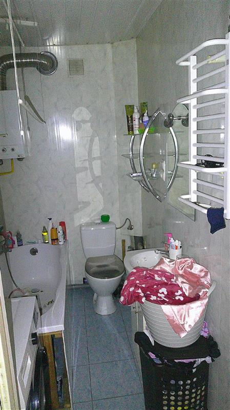 Wanna w zabudowie z paneli PCV, toaleta kompakt dolnopłuk, umywalka, piecyk gazowy Beretta (c.w.u.), grzejnik typu ręcznikowiec, wentylacja grawitacyjna