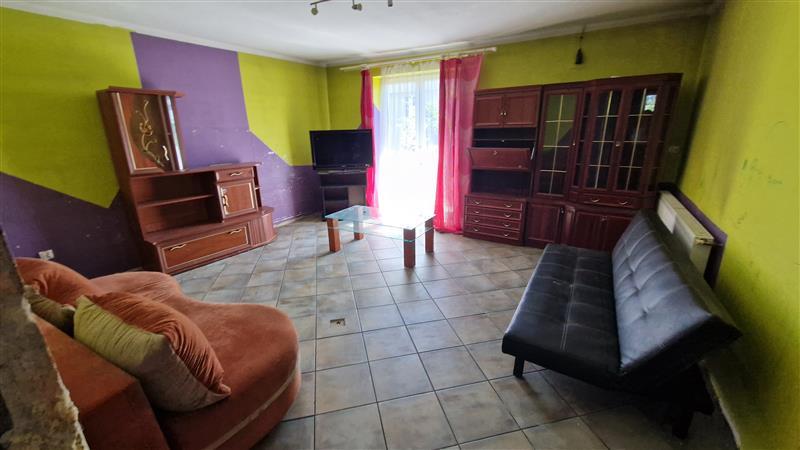 Stolarka okienna PCV, stolarka drzwiowa wejściowa drewniana, wewnętrznej brak. Instalacje: prąd, gaz, woda, kanalizacja -szambo, centralne ogrzewanie oraz ciepła woda użytkowa z pieca na gaz. Mieszkanie w złym stanie technicznym, wewnątrz panuje wilgoć, na ścianach oraz sufitach widoczne liczne wykwity oraz odpadający tynk (dach budynku przecieka zalewając lokal). Do lokalu nie przynależy żadne dodatkowe pomieszczenie.
