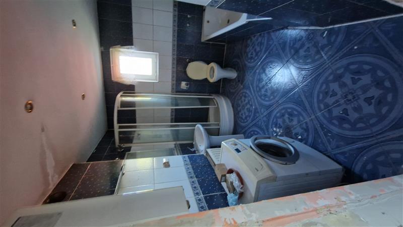- podłogę oraz ściany łazienki obłożono płytkami, sufit podwieszany;