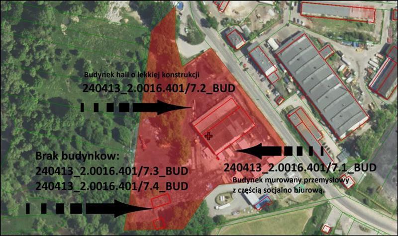 Nieruchomość gruntowa zabudowana zlokalizowana w województwie śląskim w powiecie częstochowskim w gminie Poczesna w obrębie 0016 Zawodzie w miejscowości Kolonia Borek przy ulicy Przemysłowej 1A obejmującej działkę gruntu numer 401/7 o powierzchni 2,0184 ha dla której Sąd Rejonowy w Częstochowie IX Wydział Ksiąg Wieczystych prowadzi księgę wieczystą o nr CZ1C/00069041/2. Przedmiotowa nieruchomość jest zabudowana zabudową o charakterze przemysłowym. Zgodnie z kartoteką budynków na terenie przedmiotowej są posadowione cztery budynki. Na dzień oględzin oraz sporządzenia opinii na terenie nieruchomości odnotowano dwa budynki, budynek przemysłowy o powierzchni 1225 m2, drugi budynek o powierzchni zabudowy 596 m2 łączna powierzchnia zabudowy budynków razem: 1821 m2. Na terenie nieruchomości nie odnotowano dwóch pozostałych budynków znajdujących w kartotece budynków o parametrach 169m2 i 86m2. Na dzień sporządzania opisu teren gdzie jest zlokalizowany przedmiot wyceny jest objęty miejscowym planem zagospodarowania przestrzennego - Uchwała Nr 25/IV/15 Rady Gminy Poczesna z dnia 29 stycznia 2015 r. w sprawie miejscowego planu zagospodarowania przestrzennego – strefa X obejmująca sołectwa: Kolonia Poczesna, Zawodzie oraz fragment sołectwa Poczesna. Przeznaczenie terenu – 2P przeznaczenie podstawowe – teren zabudowy produkcyjne, przeznaczenie uzupełniające – obiekty magazynowe, składy, logistyka, obsługa komunikacyjna, urządzenia infrastruktury technicznej i zieleń towarzysząca; zakaz prowadzenia działalności, której oddziaływanie zewnętrzne przekracza normy określone w przepisach odrębnych; zakaz lokalizacji przedsięwzięć mogących zawsze znacząco oddziaływać na środowisko, a w szczególności zabrania się gromadzenia odchodów zwierzęcych, środków chemicznych, emisji gazów, pyłów, hałasu oraz promieniowania, a także materiałów, które mogą zanieczyścić wody, prowadzenie odzysku lub unieszkodliwiania odpadów, w tym ich składowania,