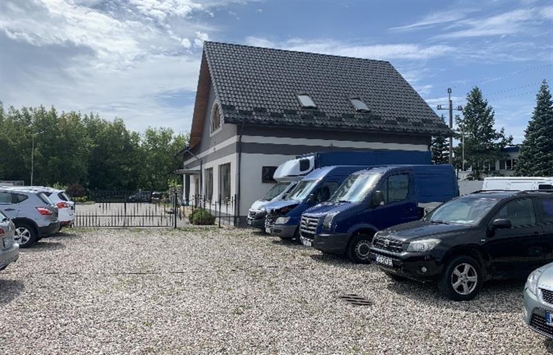opis budynku usługowo-handlowego- biekt wolnostojący, I kondygnacja, bez podpiwniczenia. Wybudowany prawdopodobnie na przełomie XX i XXI wieku jako obiekt tymczasowy do obsługi komisu samochodowego, nadal jest użytkowany. Układ funkcjonalny pomieszczeń: komunikacja, sanitariat, sala obsługi klienta. Parametry budynku: powierzchnia zabudowy 46 m2. Konstrukcja i elementy wykończeniowe budynku: lekka konstrukcja drewniana, szkieletowa, izolowana, elewacja listwy elewacyjne typu siding. Dach konstrukcji drewnianej, pokrycie onduline. Posadzka płytka ceramiczna, sufity i ściany listwy panelowe, okna pcv,stolarka drzwiowa płytowa, w sanitariacie płytki ceramiczne. Instalacje: elektryczna, wodociągowo-kanalizacyjna, ogrzewanie - grzejnik elektryczny, ciepła woda - podgrzewacz wody. Konstrukcja w stanie technicznym dobrym. Standard wykończenia średni. Funkcjonalność zabudowy średnia, brak centralnego ogrzewania.