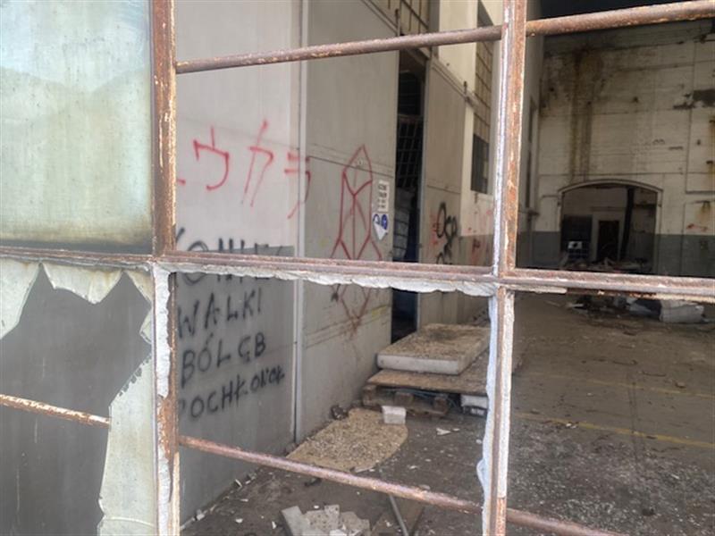 Przedmiotem licytacji jest ww. udział w prawie użytkowania wieczystego działki gruntu o nr ew. 109/15 o pow. 5 116 m2 zabudowanej halą produkcyjną o pow. 2 219 m2. Obecnie budynek nie jest użytkowany oraz nie jest wykonywana umowa dzierżawy ujawniona w księdze wieczystej. W budynku magazynowane są chemikalia nieznanego pochodzenia w ilości nie mniejszej niż 750 sztuk opakowań typu mauzer o poj. 1000 dm3 każdy, co stanowi nielegalne składowisko odpadów.