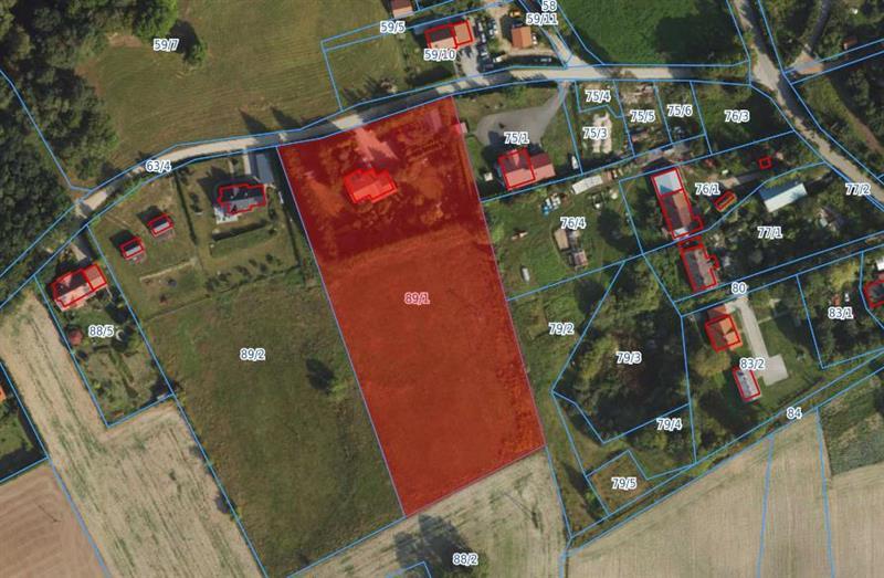 Pod względem obszarowym działka nr 89/1 zajmuje powierzchnię 9800m2. Kształt działki dość regularny, o korzystnym stosunku boków. Teren o delikatnym spadku w kierunku południowym. Działka w północnej części zabudowana jest budynkiem mieszkalnym jednorodzinnym. Na działce posadowione są również dwa domki letniskowe, garaż, obiekt gospodarczy - nieujawnione w kartotece budynków, a także obiekty małej architektury, miejsce na ognisko oraz oczko wodne. Pozostały teren wokół budynków o nawierzchni naturalnej trawiastej, z licznymi nasadzeniami drzew i krzewów ozdobnych. Od frontu budynku mieszkalnego teren utwardzony polbrukiem. W północnej części przy zabudowaniach działka ogrodzona częściowo ogrodzeniem stalowym na słupkach murowanych, częściowo siatką stalową na słupkach stalowych. Przy ogrodzeniu teren działki obsadzony żywopłotem. Południowa część działki jest niezabudowana, niezagospodarowana i nieogrodzona, o nawierzchni naturalnej trawiastej. Nad działką przebiegają sieci elektroenergetyczne niskiego i średniego napięcia z posadowionymi słupami żelbetowymi. Dojazd do działki zapewniony jest z drogi gminnej publicznej Nr 169036N o nawierzchni gruntowej (dz. nr 63/4). W bezpośrednim sąsiedztwie znajduje się zabudowa mieszkalno – gospodarcza wsi oraz tereny niezabudowane. Wyposażenie nieruchomości w infrastrukturę techniczną: woda, energia elektryczna, kanalizacja. Budynek posadowiony na działce nr 89/1 to budynek mieszkalny jednorodzinny w zabudowie wolnostojącej, wielobryłowy, parterowy z poddaszem użytkowym, podpiwniczony. Budynek wykonany w technologii tradycyjnej murowanej, z dachem dwuspadowym o konstrukcji drewnianej krytym blachą trapezową. Budynek został wybudowany w 2002r. Powierzchnia zabudowy wynosi 161 m2. Do budynku mieszkalnego dobudowano wiatrołap, który nie został ujawniony w kartotece budynków. Zgodnie z pomiarem w dniu wizji terenowej powierzchnia zabudowy wiatrołapu wynosi 4,07 m2. Na działce nr 89/1 znajdują się również obiekty nieujawnione w kartotece budynków. Obiekt garażowy o pow. zabudowy 35,35m2, obiekt gospodarczy o pow. zabudowy 53,62m2, wiata oraz dwa drewniane domki letniskowe o pow. zabudowy ok 30m2 każdy z nich.
