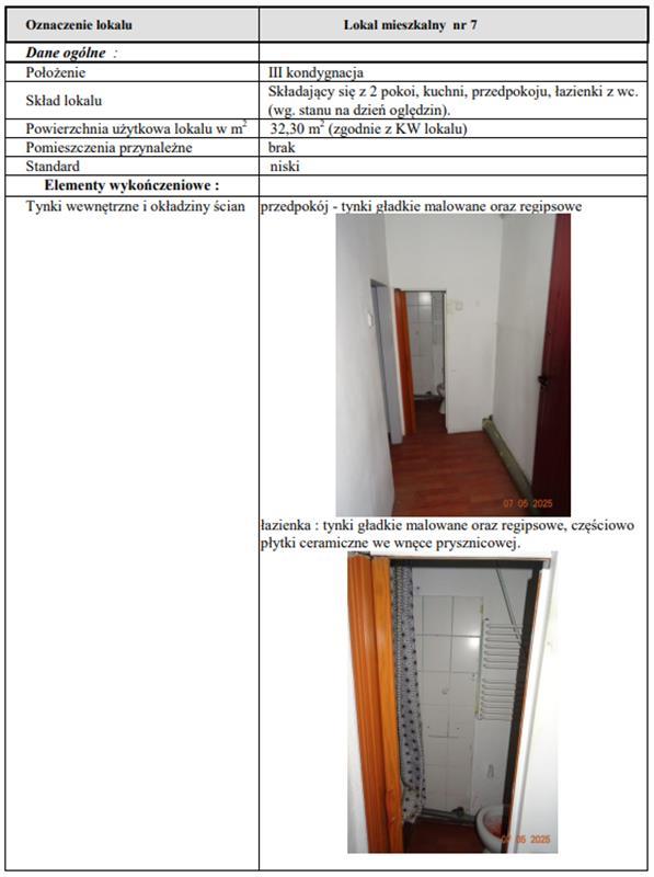 Nieruchomość stanowiąca samodzielny lokal mieszkalny nr 7 o powierzchni użytkowej 32,30 m2 składający się z 2 pokoi, kuchni, przedpokoju, łazienki z wc , położony na III kondygnacji w Nowej Rudzie przy ul. Łukowej 10, obręb 3 - Nowa Ruda, na działce nr 179/13 AM-16 o powierzchni 215 m2.