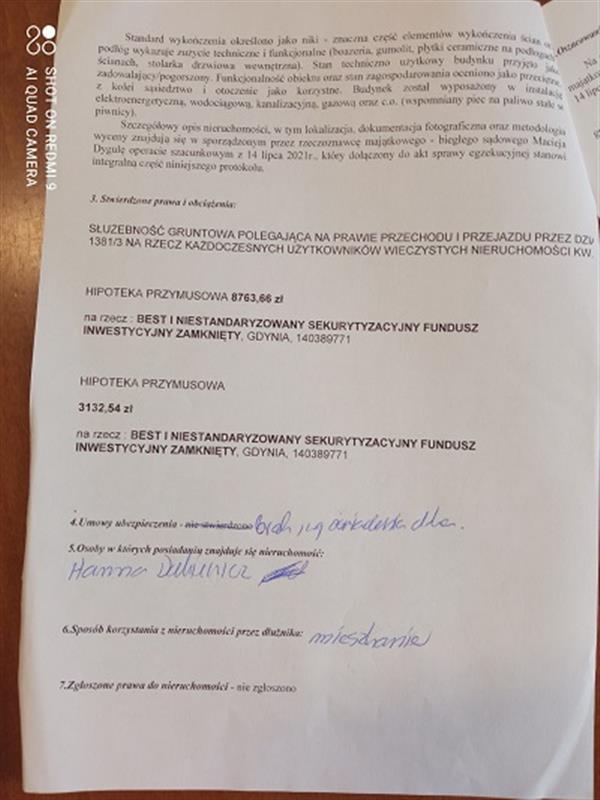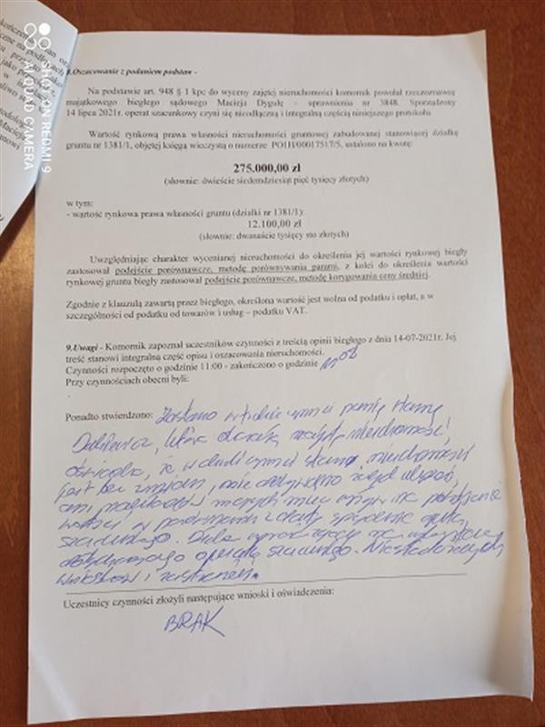 W ciągu dwóch tygodni przed licytacją wolno oglądać wyżej wymienioną nieruchomość w dni powszednie od godz. 10:00 do godz. 14:00. W systemie teleinformatycznym udostępnia się natomiast protokół opisu i oszacowania.