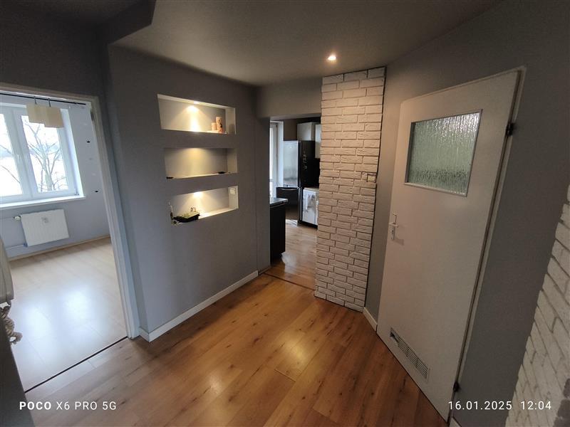Spółdzielcze własnościowe prawo do lokalu mieszkalnego o powierzchni użytkowej 63,68 m2 znajduje się na trzeciej ostatniej kondygnacji (II piętro) w budynku wielorodzinnym. Lokal składa się z trzech pokoi, wc z łazienką, kuchni i przedpokoju. Lokal posiada dwa balkony. W ramach posiadanego prawa do lokalu istnieje możliwość korzystania z pomieszczenia piwnicznego.