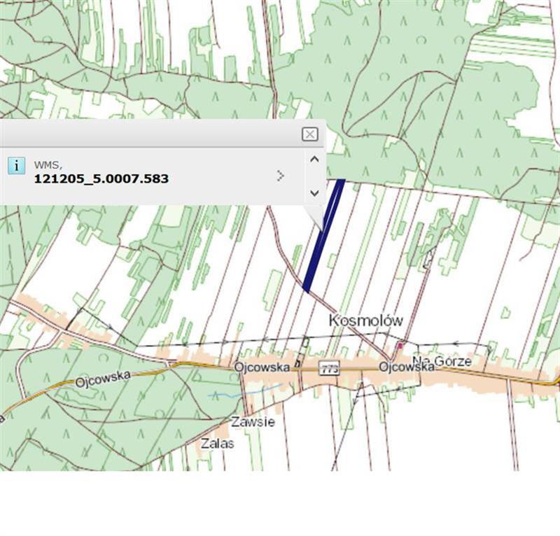Działka nr 583 o powierzchni 1,9480 ha położona w miejscowości Kosmolów w Gminie Olkusz. Użytki rolne klasy RV. Kształt prostokątny o wymiarach około 28 x 670 mb Grunt nieuzbrojony w media z dostępem fizycznym do drogi bitej