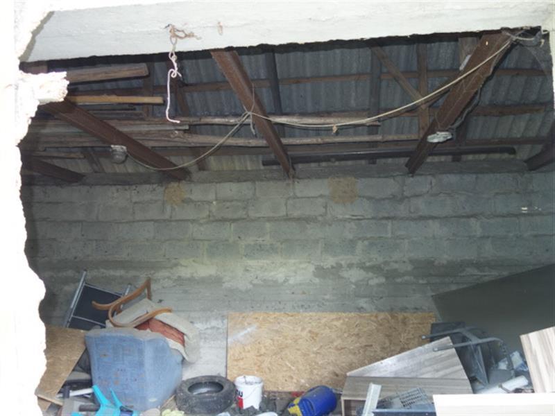 2. budynek gospodarczy w złym stanie technicznym z roku 1950, o pow. zab. 77,00 m2 , jednokondygnacyjny. Budynek murowany metodą tradycyjną z pustaka żużlowego, dach o konstrukcji drewnianej dwuspadowy pokryty eternitem, okna PCV, wrota i drzwi z desek z dużymi ubytkami, Elewacja- pozostałość po tynku cementowo-wapiennym.