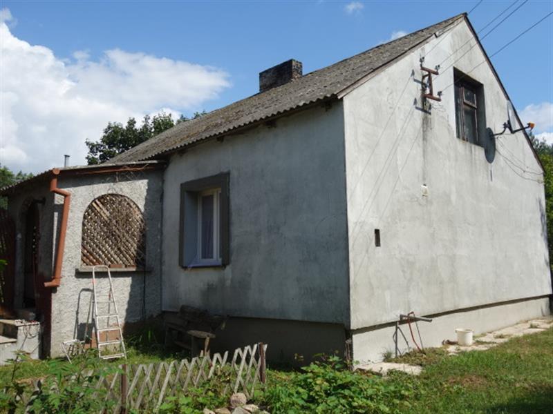 1. dom mieszkalny, z roku 1950, częściowo remontowany, jednokondygnacyjny z poddaszem gospodarczym, o pow. zab. 82,00 m2 , pow. uż 69,92 m2 (wg przelicznika Pz/Pu). Budynek o konstrukcji tradycyjnej: Fundamenty nie dokonano odkrywek, ściany zewnętrzne warstwowe: z pustaków żużlowych ocieplone styropianem, elewacji docelowej brak, schody zewnętrzne betonowe obłożone terakotą mrozoodporną. Dach o konstrukcji drewnianej, dwuspadowy, pokryty eternitem, orynnowania i rur spustowych brak. Okna PCV, na strychu drewniane. Media: energia elektryczna, sieć wodociągowa, szambo ekologiczne