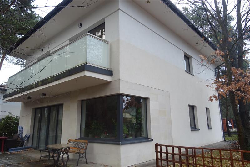 Ściany: fundamentowe z betonu żwirowego C 16/20. Zewnętrzne z pustaków ceramicznych porotherm gr. 25cm + ocieplenie (styropian), tynk cienkowarstowy malowany. Od frontu budynku oraz od strony tarasu ściany obłożone płytami elewacyjnymi z piaskowca. Ściany wewnętrzne: nośne z pustaków ceramicznych porotherm gr. 25 cm, działowe odpowiednio z pustaków porotherm, cegły pełnej i dziurawki, tynki gipsowe, malowane
