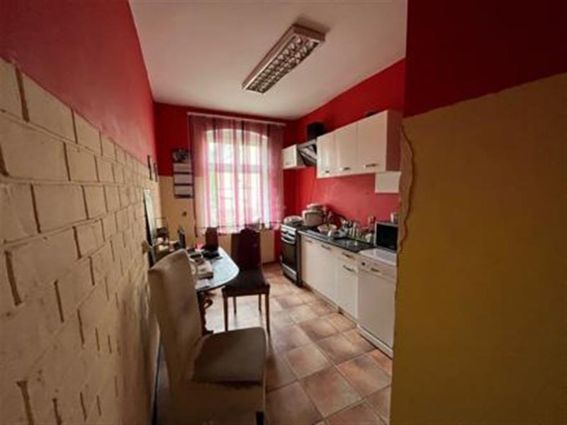 Lokal mieszkalny nr 2 o powierzchni użytkowej 59,60 m2, położony jest na I piętrze budynku mieszkalnego (o 2 kondygnacjach nadziemnych), podpiwniczonego. Wejście do lokalu dostępne bezpośrednio z klatki schodowej. Lokal składa się z trzech pokoi, kuchni, łazienki oraz przedpokoju. W lokalu okna drewniane skrzynkowe, w tym jedno wybite. Drzwi wewnętrzne drewniane starego typu. Na podłogach wykładziny PCV, w pokojach panele podłogowe. Ściany wyłożone płytkami dekoracyjnymi, dodatkowo gładzie oraz tynki strukturalne. Łazienka opłytkowana, wyposażona w kabinę prysznicową. Ogrzewanie piecem kaflowym, usytuowanym w pokoju. Ciepła woda z bojlera. Obecnie lokal jest zamieszkiwany. Do budynku przyłączono sieć: wodno-kanalizacyjną, energetyczną oraz gazową. W lokalu gaz jest odłączony.Udział nieruchomości w części wspólnej, którą stanowi prawo własności gruntu i części budynku i urządzenia: 1458/10000.