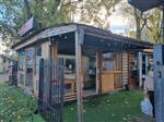 Pawilon handlowy oznaczony numerem "25" oraz grafiką"MidoKebab"